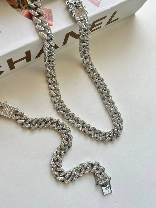 طول گردنبند ۴۵سانت وطول دستبند ۱۹سانت میباشد ، قفل کوبایی ومسترهست.