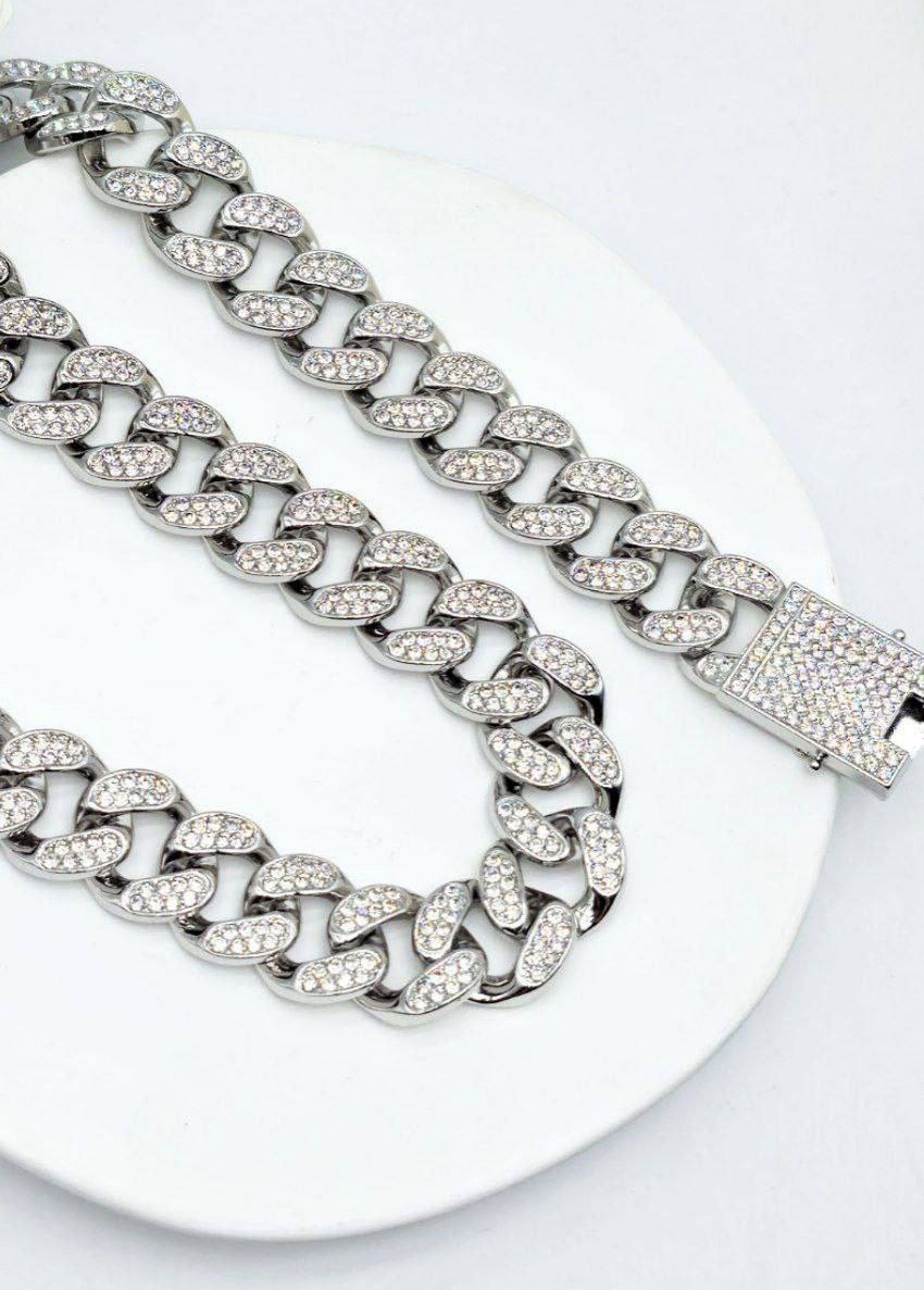 گردنبند های فول نگین چین محبوب وپرطرفداردربین نوجوانان وجوانان است دخترانه وپسرانه طول گردنبند ۴۵سانت وطول دستبند ۱۹سانت میباشد ، قفل کوبایی ومسترهست.