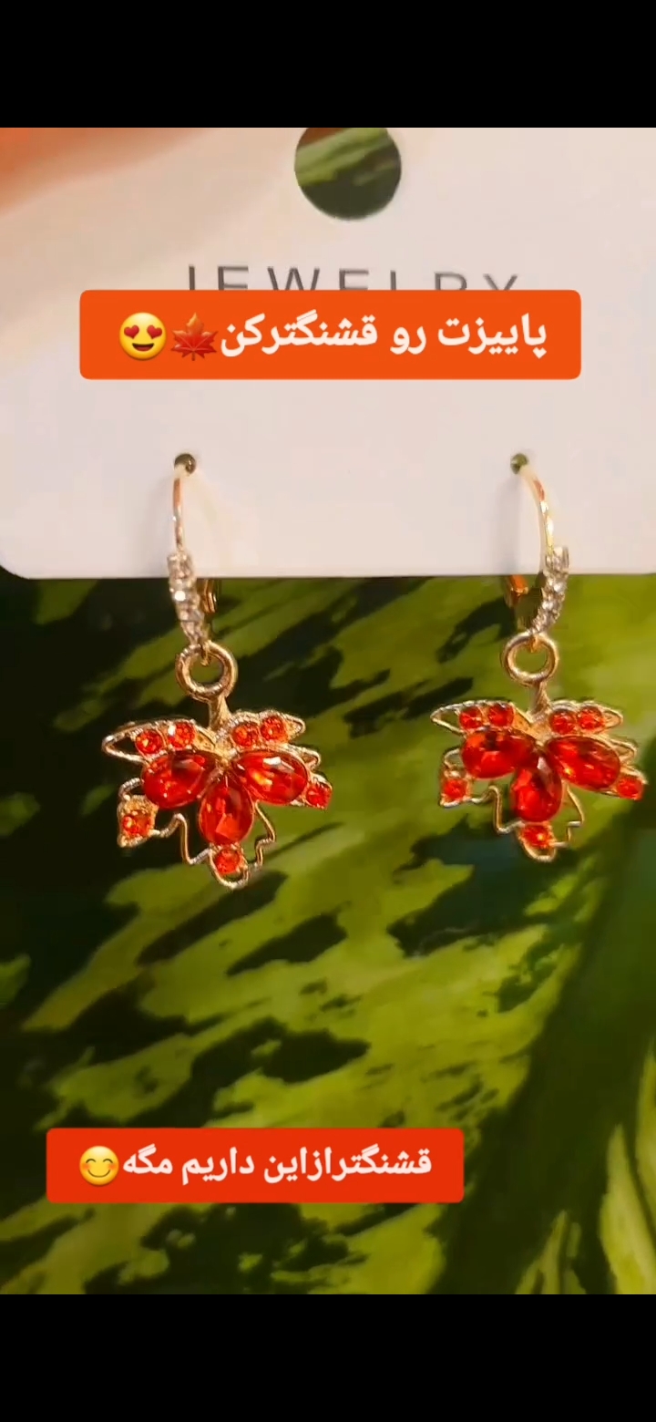 گوشواره های فشن همیشه مورداستقبال وپرطرفداره گوشواره طرح برگ پاییزی ازاین دسته گوشواره هاست که استایلتون رو خاص ترمیکنه. برای دوام بیشتر ازعطر واستحمام محافظت شود.