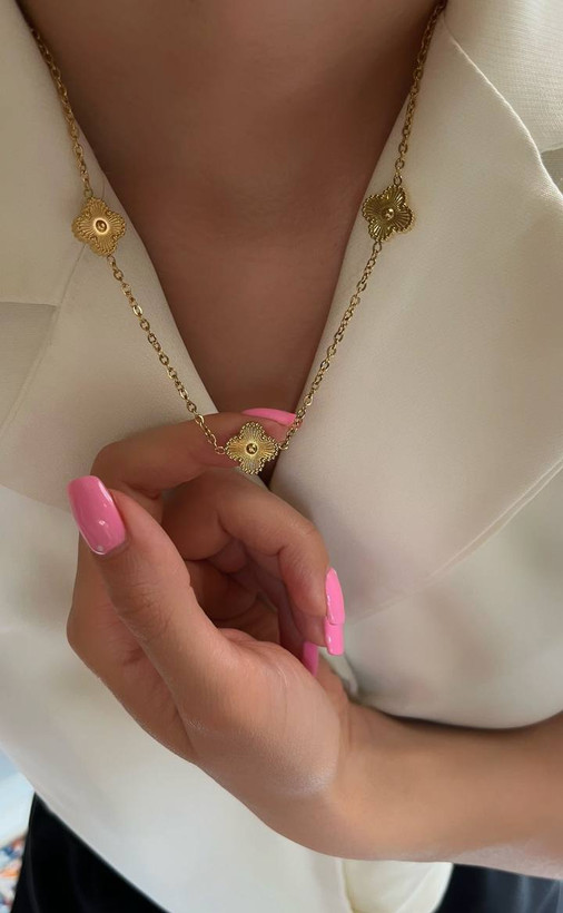 گردنبند ۵ گل ونکلیف گل دوطرفه ، استیل ورنگ ثابت